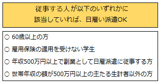 逆に昼間学生に含まれず、日雇い派遣で働くことができないのは、