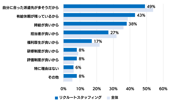 リクルートスタッフィングで継続して就業したい理由(全体との比較)