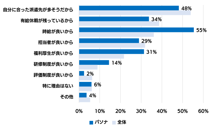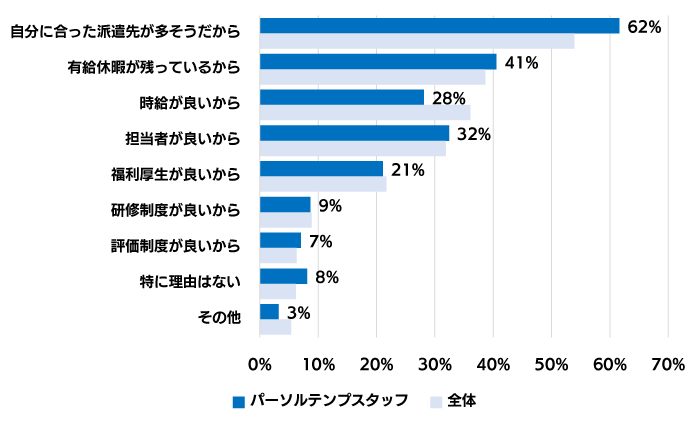 パーソルテンプスタッフで継続して就業したい理由(全体との比較)