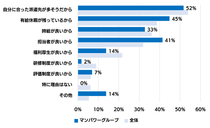マンパワーグループで継続して就業したい理由(全体との比較)