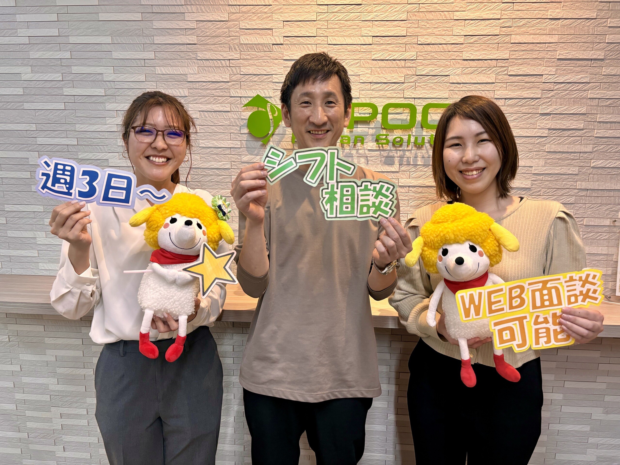 未経験・無資格で始められている方が半数以上! ゼロから経験を積める場所を多数ご用意しておりますので、安心してくださいね。 職場の環境面や雰囲気も一緒にお伝えしますし、職場見学も行っていますので、不安なくスタート出来ます♪