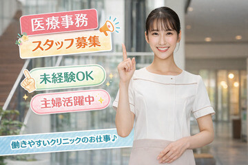 【未経験・無資格OK】電子カルテのデータ入力や患者さまの受付、看護師・医師のサポートなど、医療行為や身体介助はありません。先輩スタッフが丁寧に教えるので、初めてでも安心してスタートできます。用語や仕事の進め方もムリなく覚えられます。20代・30代・40代・50代と幅広い年代の方が実際に活躍中。