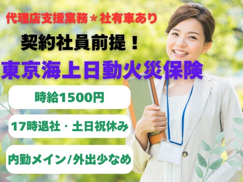【代理店支援と保険契約事務】東京海上日動火災保険での内勤業務です。見積書作成や営業推進策の実施を行います。人と接することが好きな方にオススメです!