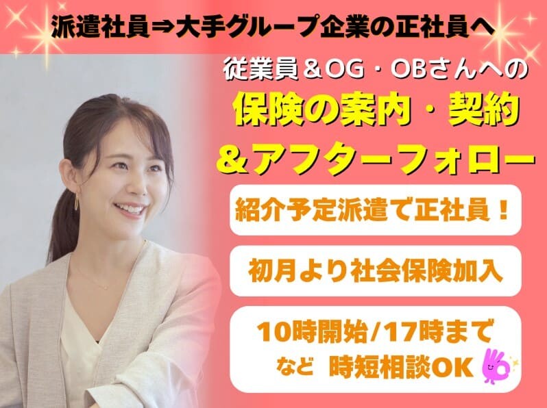 【社員向け保険の案内・契約手続き】がん保険や医療保険の案内と契約手続きを行います。飛び込み営業はなく、従業員の福利厚生的な保険を扱うため安心です。