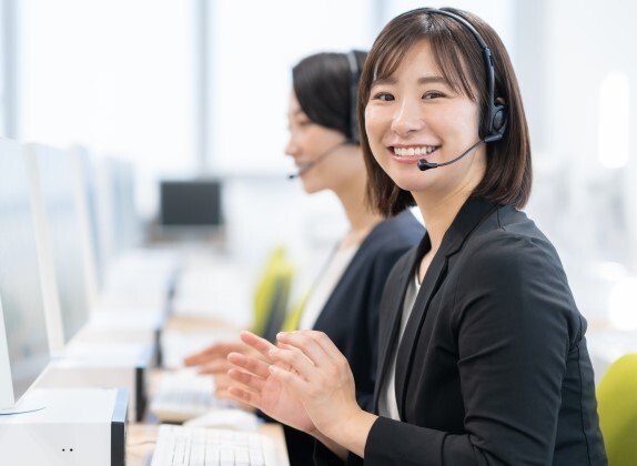 パソコンで各種情報を確認しながらの電話応対、インカムを着用しての業務になります。