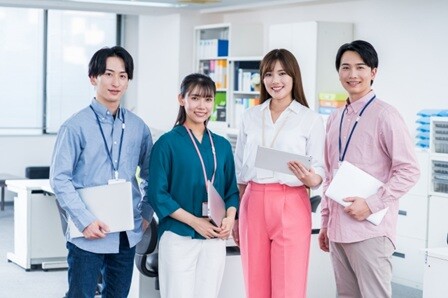 | 配属先について | ◆チーム制で安心のポジション! 男女比 男性:女性=5:5 ※同業務の方は女性多め 平均年齢 32歳 |