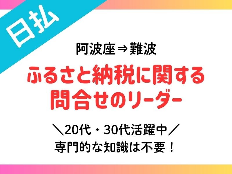 1日10~40件(繁忙期と閑散期により差があります)|受電件数/応対率などに対するノルマ一切なし!!|1件1件ゆっくりとお話を伺い、丁寧に対応することがモットーの会社です!|税控除などの難しい問い合わせへの対応は一切なし|返礼品に関する問合せが中心なので、専門的な知識不要!⇒現在は阿波座の事業所ですが2026年3月から“難波”へ移転予定