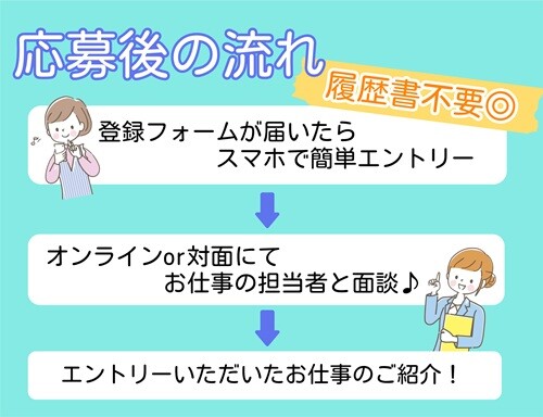 【履歴書不要】スマホでサクッと入力するだけなので履歴書や職務経歴書の用意がなくても応募OK!【WEB登録OK】自宅でサクッとWEB面接が可能です!もちろん対面での登録面接を希望の方も大歓迎!