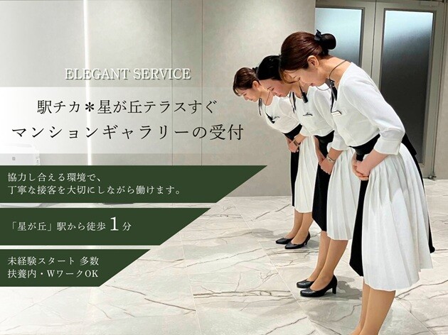 【マンションギャラリーでの接客と事務】笑顔での来客対応、案内、ドリンク提供に加え、データ入力や清掃も行います。接客スキルと事務能力が身につきます。