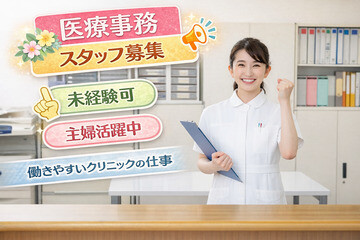 【未経験・無資格OK】電子カルテのデータ入力や患者さまの受付、看護師・医師のサポートなど、医療行為や身体介助はありません。先輩スタッフが丁寧に教えるので、初めてでも安心してスタートできます。用語や仕事の進め方もムリなく覚えられます。20代・30代・40代・50代と幅広い年代の方が実際に活躍中。