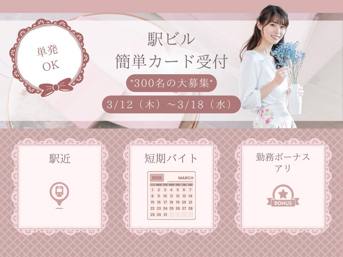 | 期間 | 単発(10日以内・1日のみ) 3/12(木)~18(水) のうち単発1日~OK*出勤日数に応じボーナス有 #3月~ |