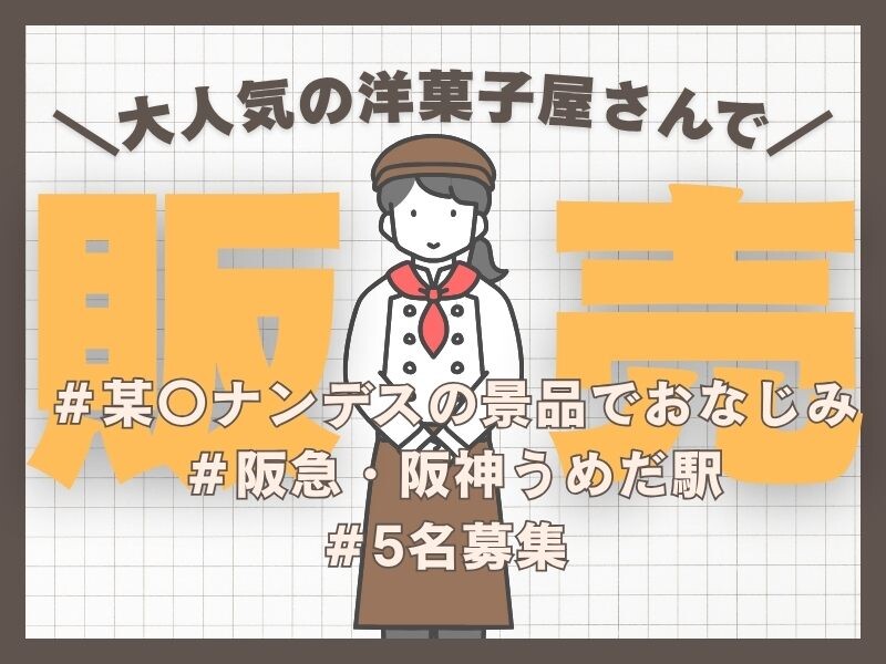 | 勤務地 | 大阪市北区 「大阪梅田駅」徒歩3分/「大阪駅」徒歩3分 |