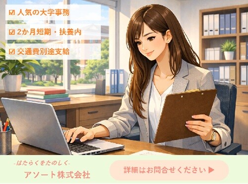 【大学での経理事務】国立大学で会計システムを使った決議書作成や旅費関係の書類作成、窓口対応などを行います。経理の経験が積めます。【早めの終業】16時までの時短勤務で、プライベートも充実できます。【残業ほぼなし】メリハリをつけて効率的に仕事ができます。