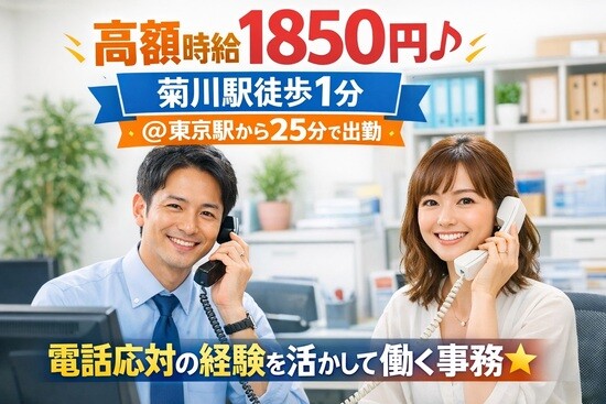 【未経験OK&活かせるお仕事経験】コールセンターの経験や、営業・営業事務の経験が活かせる職場です。一方ぴったり同じお仕事の経験をしている必要はありませんので、お客様応対をしていただける方であればどなたでもご応募可能です。事務ワークの経験も活かせますので、まずはご応募&ご相談くださいませ。未経験でも1850円からスタートなのも特徴です。