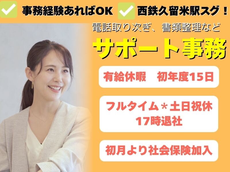 何らかの事務経験があればOK!保険のご経験や資格は不問です!土日祝日休み&残業少なめ