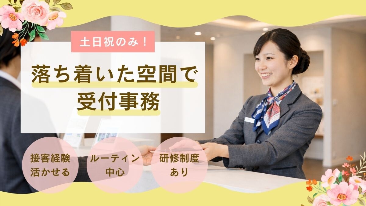 【土日祝のみ×時給1,450円】週末固定で安定収入〇 平日は自分の時間をしっかり確保できます。決まった業務が中心なので、落ち着いて働ける環境です。