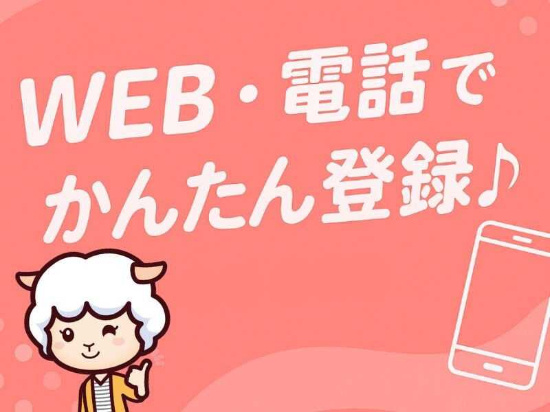 現在、「電話登録」・「WEB登録」・「来社登録」お選びいただけます。 |