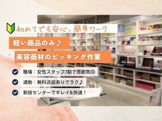 女性比率7割と安心&綺麗なセンターで快適&人気の美容商材ピッキング!