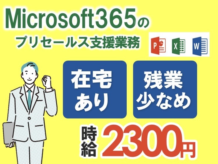 Microsoft365に関する営業・導入支援のお仕事です!週2回程度テレワーク導入中(業務習得後)