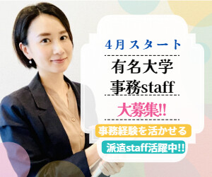 | 配属先について | 大学内の事務室でのお仕事です。 男女比 女性がやや多い職場です(部署による) 平均年齢 40才 |