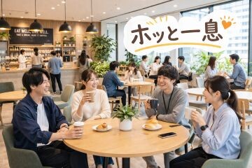 ・できたばかりのキレイな新オフィス!カフェテリア休憩スペースでしっかりリフレッシュ!無料ドリンクあり(お茶・コーヒーなど)お菓子・軽食もあって気分転換しやすい環境