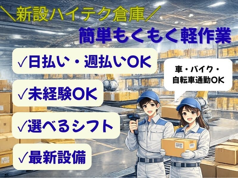 人間関係ゼロからスタートできる環境で、安定して働きたい方におすすめです!車・バイク通勤もOK!