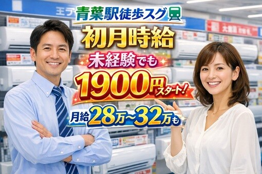 【時給は1,800円~】ただし未経験者は@1,750円スタートとなります。未経験者でも充実した研修などでしかりフォローさせてもらいますのでご心配には及びません。実生活に密着した家電で、大手メーカー様製品ということで誰もが知ってる馴染み深いシリーズを扱っていただきます。安心して説明活動ができます。そんな環境で是非チャレンジしてみませんか。