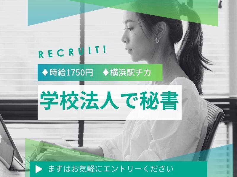 ▼横浜駅エリア ▼週5日 ▼フルタイム ▼専門学校 ▼秘書業務 ▼総務業務 ▼高時給 ▼交通費全額 ▼土日祝休み ▼社会保険完備 ▼有給休暇:10日/年~ ▼オフィスカジュアル ▼残業ほぼなし ▼秘書経験不問 ▼電話登録 ▼WEB登録 ▼来社登録