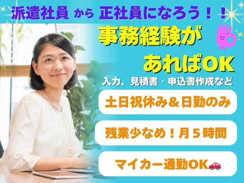 【派遣⇒正社員へ】事務経験があればOK!保険知識を身につけてスキルアップできます〇正社員登用後は、賞与&昇給&退職金アリ