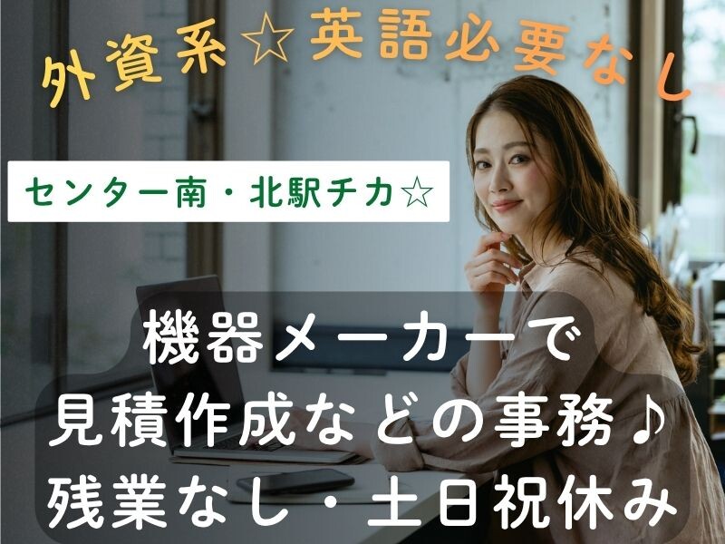 見積作成を中心に、顧客や商品のデータ入力などをお任せします!「営業事務の経験を活かしたい」「落ち着いた環境で働きたい」そんな方にピッタリ♬同じ部署に当社スタッフも在籍しているので安心スタート!研修+OJT+マニュアル完備で、ERPの経験があればスムーズに馴染めます!電話は取次対応メインです!残業なし&1日6時間~OKなので、プライベートとの両立もバッチリ✨