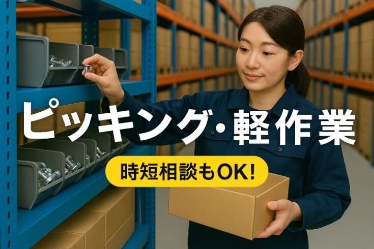 ≪▼お仕事内容≫大手メーカーで、部品のピッキング・梱包、記録用紙の管理などの、軽作業+カンタン事務のお仕事です!