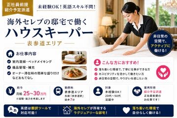 正社員前提の紹介予定派遣!≪表参道エリア・海外セレブが所有する邸宅でのハウスキーパー|未経験OK!英語スキル不問!≫