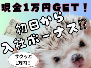 入社ボーナス「サクッと1万」開始\\\入社初日に「入社祝い金1万円」をGET!///