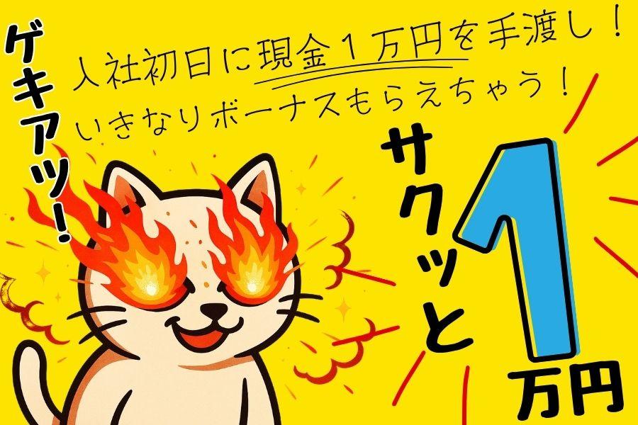 入社ボーナス「サクッと1万」開始\\\入社初日に「入社祝い金」GET!///