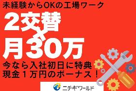 | 勤務時間 | 〈2交替〉生産状況によって 残業時間 残業:月10~20h程度あり |