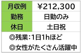 | 時給 | 時給1100円/月収例 21.2万円/残業 月20hほど |