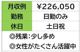 | 時給 | 時給1100円/月収例 22.6万円/残業 月30hほど |