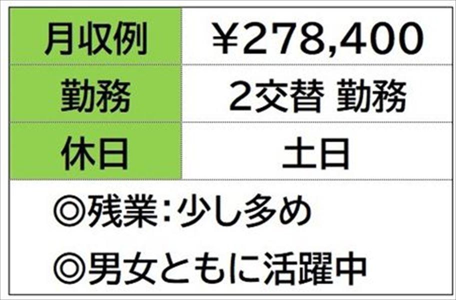 | 勤務時間 | 【交替勤務】 残業時間 月 38 時間程度発生することがございます。 ☆月収例 278400円♪ 〈所定168h×1200円 +残業38h×1500円+深夜66h×300円〉 |