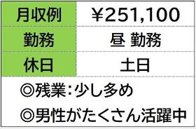 | 勤務時間 | 【昼勤務】8:00~17:00 残業時間 月 33 時間程度発生することがございます。 ☆月収例 251100円♪ 〈所定168h×1200円 +残業33h×1500円〉 |