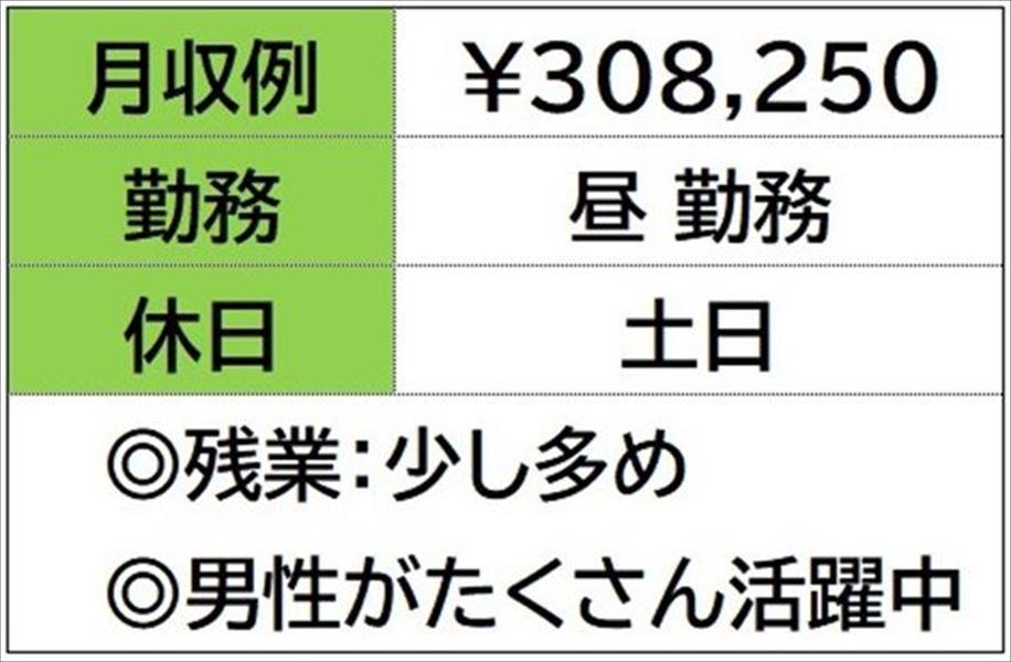 | 勤務時間 | 【昼勤務】8:30~17:30 残業時間 月 30 時間程度発生することがございます。 ☆月収例 308250円♪ 〈所定168h×1500円 +残業30h×1875円〉 |