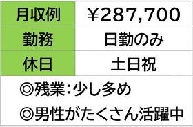 | 勤務時間 | 【昼勤務】 残業時間 月20 時間程度発生することがございます。 ☆月収例 287、700円♪ 〈所定168h×1400円 +残業30h×1750円〉 |