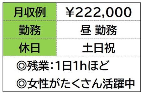 | 時給 | 時給1200円/月収例 22.2万円/残業 月20hほど |