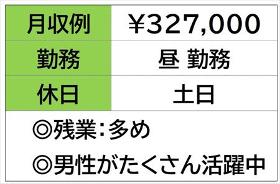 | 勤務時間 | 【昼勤務】8:25~17:30 残業時間 月 30 時間程度発生することがございます。 ☆月収例 328、800円♪ 〈所定168h×1600円 +残業30h×2000円〉 |