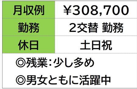 | 時給 | 時給1400円/月収例 30.8万円/残業 月30hほど |