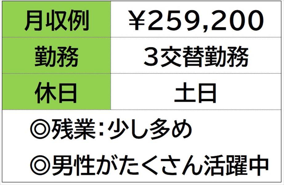 | 勤務時間 | 【交替勤務】 残業時間 月 30 時間程度発生することがございます。 ☆月収例 259、200円♪ 〈所定168h×1200円 +残業30h×1500円+深夜42h×300円〉 |
