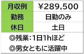 | 時給 | 時給1500円/月収例 28.9万円/残業 月20hほど |