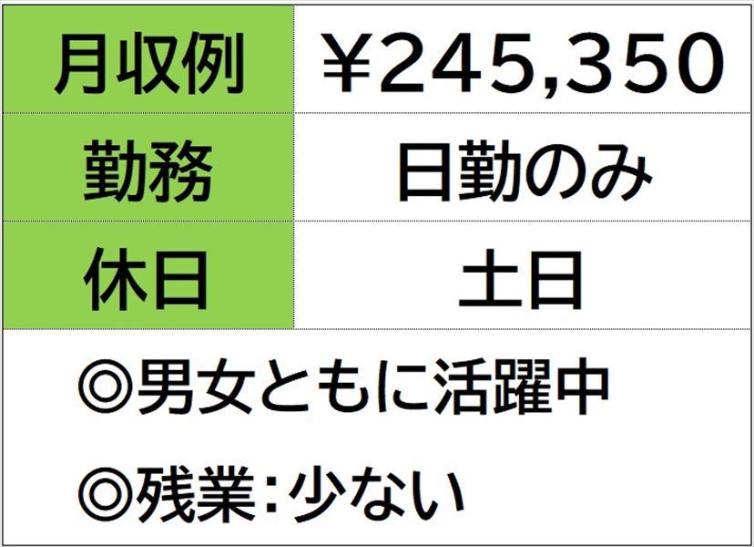 | 勤務時間 | 【日勤のみ】 残業時間 【残業】 月 10 時間程度発生することがございます ☆月収例 245,350円♪ 〈所定162.75h×1400円 +残業10h×1750円〉 |