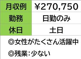 | 時給 | 時給1500円/月収例 27.0万円/残業 月10hほど |