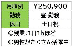 | 時給 | 時給1300円/月収例 25.0万円/残業 月20hほど |