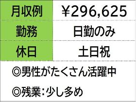 | 勤務時間 | 【昼勤務】 残業時間 月 35 時間程度発生することがございます。 ☆月収例 296,625円♪ 〈所定154h×1500円+残業35h×1875円〉 |